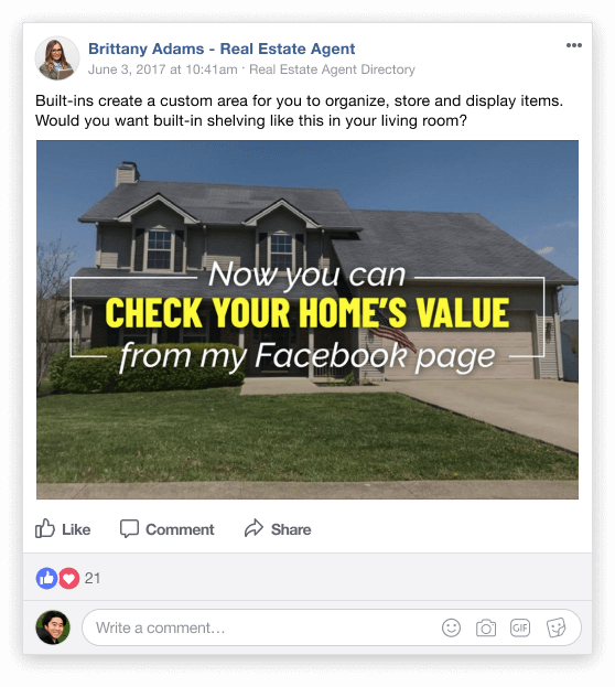 Four times a month, you’ll receive automated Facebook posts promoting your “What’s My Home Worth” landing page. These will include a link that takes potential sellers to request their CMA on your landing page. Once their property address is entered, they just need to add their contact information and timeline for selling- and that’s it!